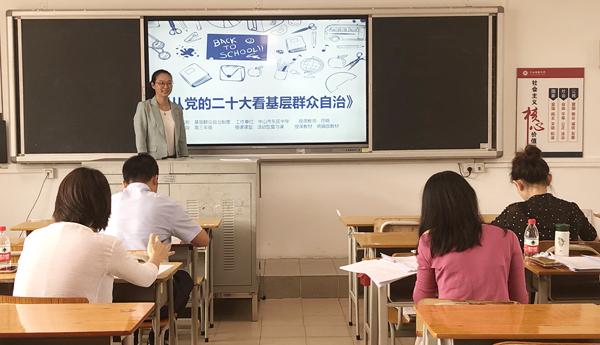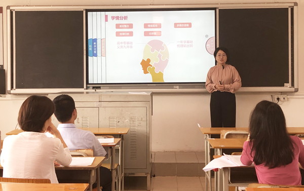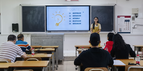 11月16日,大賽的第二階段——課堂教學(xué)比賽正式拉開帷幕。此次比賽,四個(gè)賽場(chǎng)同時(shí)亮劍,高手過招,精彩紛呈。比賽的教師精神飽滿,立足本學(xué)科特點(diǎn)進(jìn)行教學(xué),教學(xué)過程條理清晰,使用信息技術(shù)助力教學(xué)效果提升,展示了較強(qiáng)的教學(xué)能力。符曉老師執(zhí)教的《從黨的二十大看基層群眾自治》,深入淺出,非常符合高三學(xué)生復(fù)習(xí)備考的學(xué)情;程超老師執(zhí)教的《老人與海》,層層設(shè)問,問題設(shè)置很有梯度,啟發(fā)性強(qiáng),教師點(diǎn)評(píng)精準(zhǔn)及時(shí);盧小芳老師執(zhí)教的《將進(jìn)酒》,課堂文化氣息濃厚,板書設(shè)計(jì)有創(chuàng)意,學(xué)生參與度高,學(xué)生朗讀特別精彩;梁婧怡老師條理清晰,循循善誘,將“冪函數(shù)”的知識(shí)化繁為簡(jiǎn);陳安琪老師執(zhí)教的《鐵鹽與亞鐵鹽》,既有有趣味的實(shí)驗(yàn),又有理論的高度,雖是一名新教師,卻對(duì)課堂駕輕就熟;孟希桐老師執(zhí)教的《健康的な學(xué)校生活》,情境真實(shí),貼近學(xué)生生活,學(xué)生的參與度高;史雪嬌老師執(zhí)教的《厄爾尼諾和拉尼娜現(xiàn)象及其對(duì)地理環(huán)境的影響》,對(duì)考點(diǎn)把握精準(zhǔn),符合高三備考學(xué)情;曾馨璇執(zhí)教的《牛頓第一定律》,教學(xué)目標(biāo)清晰,注重提升學(xué)生素養(yǎng);葉雋老師執(zhí)教的《冪函數(shù)》思路清晰,信息技術(shù)運(yùn)用得恰到好處;羅汶濤老師執(zhí)教的《酶的作用與本質(zhì)》,選題精準(zhǔn),教師授課語言充滿激情;楊婷婷老師執(zhí)教的《選必二Unit3 Reading and Writing》,讀寫結(jié)合,對(duì)學(xué)生能力的提升落實(shí)非常到位;張昱老師執(zhí)教的《統(tǒng)一多民族國(guó)家的形成》,思路清晰,教師駕馭課堂的能力強(qiáng);馮璽翀老師執(zhí)教的《軟式棒壘球-進(jìn)攻戰(zhàn)術(shù)》,師生互動(dòng)精彩,盡展教師個(gè)人魅力;楊麗媛老師執(zhí)教的《隸書源流與賞析》,巧妙講述中國(guó)文化,在潛移默化中培養(yǎng)學(xué)生的文化自信;黃福貴老師執(zhí)教的《如何鑒賞美術(shù)作品》,格調(diào)高雅,理論素養(yǎng)高……十五堂課,堂堂精彩,展現(xiàn)了他們?cè)鷮?shí)的教學(xué)基本功,彰顯了我校青年教師在專業(yè)發(fā)展之路上的探索和思考。