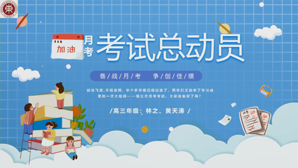 在距離2023年高考200天之際,為強(qiáng)化高三備考沖刺意識,鼓舞高三師生士氣,瞄準(zhǔn)目標(biāo),闊步前行,高三年級于11月19日第九節(jié)課借助釘釘平臺召開主題為《備戰(zhàn)月考,爭創(chuàng)佳績》月考動員大會。會議由年級主任林之老師主持,學(xué)校領(lǐng)導(dǎo),全體高三師生認(rèn)真聆聽了本次會議。
