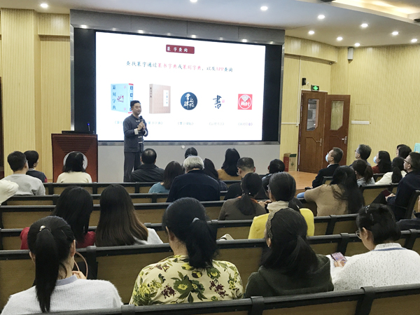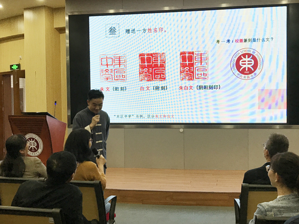 本次校本培訓(xùn)由我校中華優(yōu)秀傳統(tǒng)文化中心教研組施恒老師主講,培訓(xùn)主題為篆刻藝術(shù)專題《方寸之間精雕細(xì)琢》。講座分四個(gè)主要內(nèi)容,分別為篆刻的起源、應(yīng)用、推廣以及最后的互動(dòng)。施老師通過2008年北京奧運(yùn)會(huì)”中國印”和2022年北京冬奧會(huì)“會(huì)跳舞”的運(yùn)動(dòng)圖標(biāo)導(dǎo)入培訓(xùn)主題,詳細(xì)解讀并現(xiàn)場示范了如何熟練運(yùn)用篆刻的形式、篆法與刀法,他通過結(jié)合我校特有的篆刻校園文化,分享了我校近五年的篆刻文化畢業(yè)衫掠影,為大家?guī)砹艘粓錾鷦?dòng)有趣、內(nèi)涵豐富、實(shí)用性強(qiáng)的文化大餐,同時(shí)也展示了我校兩位同學(xué)在省教廳印跡中國比賽中分別取得省二、三等獎(jiǎng)并代表廣東省參加教育部國賽的參賽作品。講座的最后,施恒老師和全校老師們進(jìn)行了更為深入的互動(dòng)問答,也將學(xué)生們親手制作的許愿牌及書簽贈(zèng)與了現(xiàn)場老師。