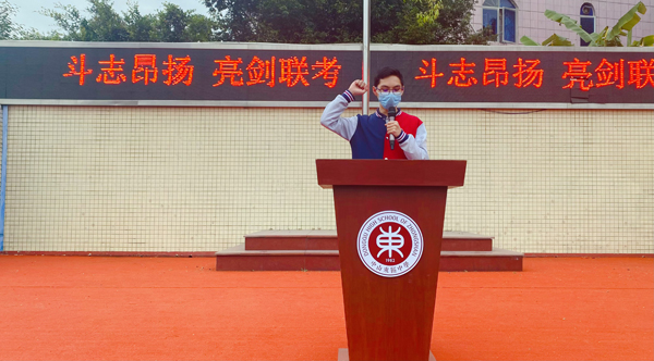 榜樣的力量是無窮的,在灣區(qū)聯(lián)考的緊要關(guān)頭,吸取榜樣的學(xué)習(xí)經(jīng)驗?zāi)茏屚瑢W(xué)們更加有的放矢。學(xué)生代表賴佳銘同學(xué)從“決心、信心、平常心”角度向同學(xué)們分享了自己的心得體會。她認為,面對聯(lián)考,同學(xué)們要有與知識、與書本、與試題死磕到底的決心;要躊躇滿志,要有一定能上大學(xué)的堅定信心:面對任何一場考試,更要平常心視之,認清自我,放寬心態(tài),才能趕走焦慮。