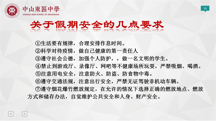 會(huì)議包含五個(gè)議程,首先,年級進(jìn)行寒假安全教育工作,組織學(xué)生觀看紫馬嶺派出所錄制的安全講座,強(qiáng)調(diào)了網(wǎng)絡(luò)安全、交通安全、溺水事故和火災(zāi)事故。