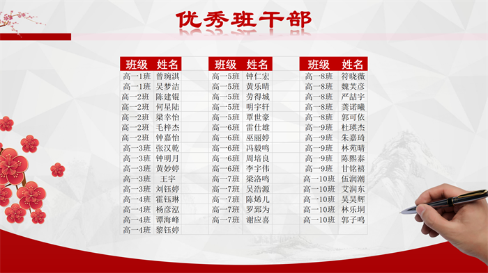接下來,彭主任對(duì)本學(xué)期表現(xiàn)優(yōu)秀的學(xué)生進(jìn)行表彰,所頒發(fā)的獎(jiǎng)項(xiàng)有:校園十佳、優(yōu)秀學(xué)生干部、優(yōu)秀團(tuán)干部、優(yōu)秀班干部、三好學(xué)生、文明宿生。獲獎(jiǎng)學(xué)生們?cè)诒緦W(xué)期展現(xiàn)出了良好的精神面貌,彰顯了榜樣的力量。屏幕另一方的家長和學(xué)生,也都紛紛在釘釘群內(nèi)留言,為獲獎(jiǎng)的同學(xué)點(diǎn)贊。