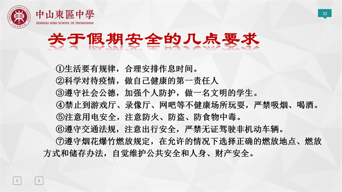 說起假期,“安全”是極其特別重要的關(guān)鍵詞。為了加強(qiáng)同學(xué)們的法律意識(shí)和安全意識(shí),提高自我保護(hù)的能力,我校邀請(qǐng)了紫馬嶺派出所警察為同學(xué)們進(jìn)行了一場寒假安全教育講座,內(nèi)容豐富、意義深遠(yuǎn)。此外關(guān)于假期安全,彭主任特別強(qiáng)調(diào):希望同學(xué)們?cè)诩倨谀軌蚝侠戆才抛飨r(shí)間;加強(qiáng)自身安全思想意識(shí),注意用電安全、交通安全;陽康后的一些注意事項(xiàng)等。
