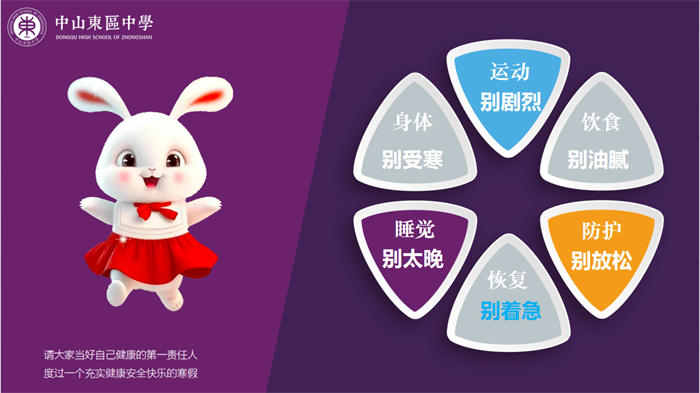 緊接著,彭主任作出了高一學(xué)生的寒假學(xué)習(xí)安排,本次寒假學(xué)生的作業(yè)包括學(xué)科作業(yè)和德育實(shí)踐作業(yè),學(xué)科作業(yè)全部通過升學(xué)E網(wǎng)通發(fā)布,德育作業(yè)包含爭當(dāng)傳承文化的藝術(shù)兔、爭當(dāng)博覽群書的閱讀兔、爭做學(xué)富五車學(xué)習(xí)兔、爭當(dāng)熱愛勞動(dòng)勤勞兔。最后預(yù)祝全體高一年級(jí)的師生能共過一個(gè)充實(shí)、文明、祥和的春節(jié)!