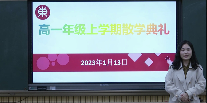 晚上8點(diǎn)整,高一年級(jí)全體學(xué)生與家長以及班主任老師們準(zhǔn)時(shí)守候在線上,等候散學(xué)典禮開始。散學(xué)典禮由年級(jí)主任彭淑鳳主持。散學(xué)典禮主要分為四部分。典禮一開始回顧了2022年學(xué)生和班主任們共同學(xué)習(xí)生活的點(diǎn)點(diǎn)滴滴。