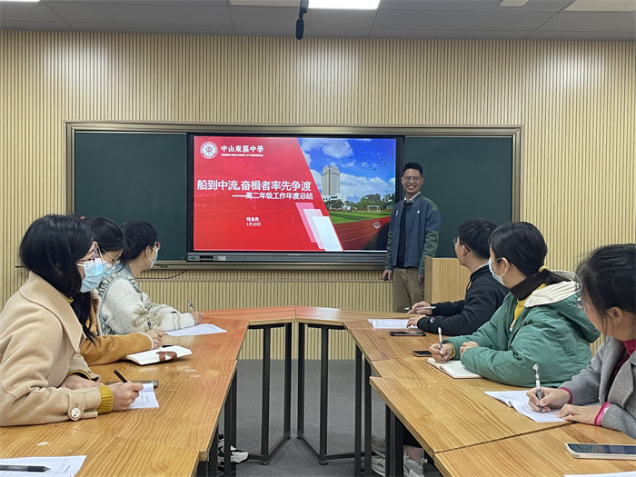 高二年級(jí)在學(xué)校錄播室進(jìn)行了學(xué)期德育工作總結(jié)。錢逢勝主任從年級(jí)班主任團(tuán)隊(duì)工作再上新臺(tái)階、常規(guī)管理常抓不懈、安全守護(hù)時(shí)刻在線、主題教育活動(dòng)豐富多彩、家校合作共同育人等五個(gè)方面總結(jié)了高二上學(xué)期年級(jí)德育工作的情況,鼓勵(lì)大家再接再厲,在嶄新的2023年團(tuán)結(jié)協(xié)作努力使工作再上新臺(tái)階。班主任代表許敏萱老師分享了自己參評(píng)中山市特色班集體的經(jīng)驗(yàn)和心得,田丁宜文老師分享了自己本學(xué)期家訪的經(jīng)歷和收獲。