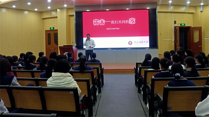 為了加強學(xué)校宿舍管理,提升住宿生的自我管理和自我約束能力,營造良好的學(xué)習(xí)和生活環(huán)境,2023年2月5日晚上,中山市東區(qū)中學(xué)于報告廳召開本學(xué)期宿生會議,本次會議由德育處蔡昌盛主任主持,分男女生兩場,宿管老師和住宿生參加。
