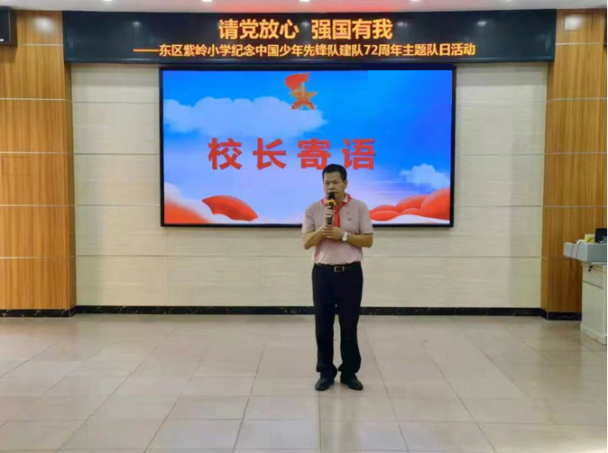 為認(rèn)真學(xué)習(xí)宣傳習(xí)近平總書記“七一”重要講話精神,教育引導(dǎo)少年兒童了解黨的光輝歷史、感悟黨的初心使命、領(lǐng)會(huì)黨的創(chuàng)新理論、體認(rèn)黨的精神譜系、傳承黨的紅色基因。東區(qū)紫嶺小學(xué)開展了“請(qǐng)黨放心,強(qiáng)國(guó)有我”慶祝中國(guó)少年先鋒隊(duì)建隊(duì)72周年主題隊(duì)日活動(dòng)。