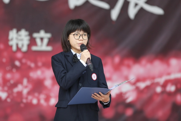 首先是升旗儀式,全校師生共同面向國(guó)旗,在洪亮國(guó)歌聲中,共同注視國(guó)旗冉冉升起。校團(tuán)委副書(shū)記、2020級(jí)8班張潔同學(xué)做題為《一朝沐杏雨,一生念師恩》的國(guó)旗下講話。張潔同學(xué)的講話中代表團(tuán)委對(duì)班主任的辛勤付出,表示感謝,并號(hào)召全體學(xué)生在這個(gè)時(shí)間里,與班主任老師們共同度過(guò)一個(gè)快樂(lè)、難忘的班主任節(jié)。在輕柔抒情的背景音樂(lè)中,2020級(jí)5班的劉泓岑、李啟俊、胡倬穎、徐焰四位同學(xué)深情朗誦寫(xiě)給班主任老師們的贊歌——《流光》。從這首對(duì)班主任老師們愛(ài)的贊歌中,我們能夠感受到班主任對(duì)我們"諄諄教誨似親人,春風(fēng)化雨如春蠶"的無(wú)私奉獻(xiàn),讓我們更深刻感受到師恩似海的偉大。正如《流光》這首詩(shī)一般,老師您就是那抹指引我們前行的流光!2020級(jí)1班的音樂(lè)生為老師們傾情獻(xiàn)唱的歌曲《平凡頌》。雖是平凡的頌歌,但獻(xiàn)給的對(duì)象卻是于平凡中的默默付出的班主任。