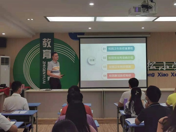 會上,梁柱明校長作了多項工作安排,重點要求高標(biāo)準(zhǔn)完成校園衛(wèi)生清潔及疫情防控應(yīng)急演練工作。李濤主任重新講解了一遍衛(wèi)生清潔安排及應(yīng)急演練方案內(nèi)容,對各個節(jié)點的任務(wù)內(nèi)容和人員安排再次做了明晰和要求,讓每位教師做到心中有流程,心中有規(guī)范,對每個一環(huán)節(jié)了然于胸。隨后衛(wèi)生副校長楊潔煒醫(yī)生給全體教師開展了一次衛(wèi)生防控知識培訓(xùn),特別強調(diào)了常見多發(fā)類的各種傳染病的預(yù)防和處置辦法。