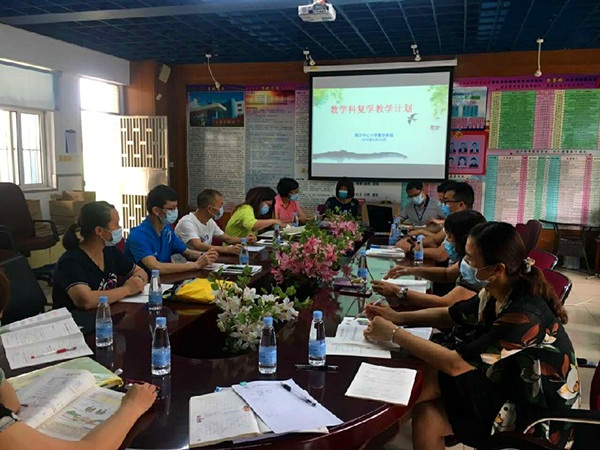 首先,吳文海副校長對(duì)這次數(shù)學(xué)科復(fù)學(xué)教學(xué)計(jì)劃研討活動(dòng)進(jìn)行安排,明確活動(dòng)的具體要求。吳文海副校長以自己所教的三(3)班數(shù)學(xué)為例子來介紹復(fù)學(xué)教學(xué)計(jì)劃的制定。他分別從上一學(xué)期學(xué)生成績基本情況分析、線上教育情況的分析、復(fù)學(xué)后提高教學(xué)質(zhì)量的具體措施、復(fù)學(xué)后教學(xué)進(jìn)度安排進(jìn)行詳細(xì)說明。接著,請(qǐng)教育事務(wù)指導(dǎo)中心黃鳳英教研員進(jìn)行指導(dǎo)。她指出復(fù)學(xué)后授課要按質(zhì)按量完成,要真正做到高效課堂。要把每天的教學(xué)內(nèi)容安排出來,以年級(jí)為單位嚴(yán)格制定教學(xué)進(jìn)度表,利用測試及時(shí)發(fā)現(xiàn)不足,然后制定補(bǔ)救措施。隨后,數(shù)學(xué)科組分年級(jí)進(jìn)行研討,制定復(fù)學(xué)后的教學(xué)計(jì)劃。