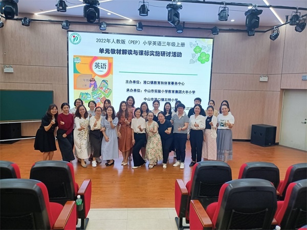 金秋十月,碩果飄香,為了深化小學(xué)英語(yǔ)課堂的教學(xué)改革,提高課堂教學(xué)質(zhì)量,幫助老師們整體把握課程標(biāo)準(zhǔn),落實(shí)學(xué)科核心素養(yǎng),深度解讀教材,助力教師專業(yè)化成長(zhǎng),10月27日下午,經(jīng)中山市港口鎮(zhèn)教育和體育事務(wù)中心主辦、中山市實(shí)驗(yàn)小學(xué)教育集團(tuán)大豐小學(xué)和港口鎮(zhèn)石特小學(xué)承辦的2022-2023學(xué)年度上學(xué)期小學(xué)英語(yǔ)三年級(jí)單元教材解讀與課標(biāo)實(shí)施研討活動(dòng)在大豐小學(xué)報(bào)告廳舉行。參加此次研討活動(dòng)的有港口鎮(zhèn)小學(xué)英語(yǔ)中心教硏組組長(zhǎng)蔡?hào)|琳老師,大豐小學(xué)黃艷冰校長(zhǎng)、陳宇環(huán)副書記、馮秀珍主任、英語(yǔ)導(dǎo)師梁藝娟老師和陳媛芳老師,港口鎮(zhèn)各小學(xué)三年級(jí)英語(yǔ)教師及承辦單位全體英語(yǔ)教師,本次活動(dòng)由大豐小學(xué)英語(yǔ)科組長(zhǎng)陳秋霞老師主持。
