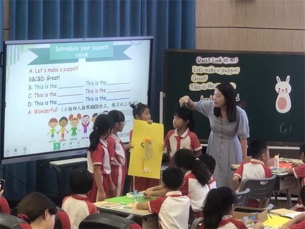 石特小學(xué)陳冰娜老師給大家呈現(xiàn)了一節(jié)詞句課——B Let's talk,Let's learn & Let's do部分。陳老師創(chuàng)設(shè)了Sarah和Mike一起做木偶的情境,將新授知識(shí)進(jìn)行有效構(gòu)建,通過(guò)舊物制作木偶活動(dòng)培養(yǎng)學(xué)生在實(shí)踐中運(yùn)用語(yǔ)言的能力、合作精神及環(huán)保意識(shí)。