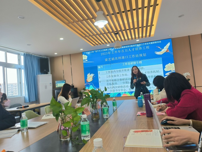 隨后,梁老師以《做師生成長路上的點燈人》的視頻對工作坊2022年的工作開展情況做了回顧總結。港口工作坊半年期間開展了14次研修活動,其中梁藝娟老師專題講座3場,讀書分享會2場,專家講座5場,線上研修9次。工作坊共邀請廣州市名師、河源市名師、中山市名教師、百千萬導師、高校專家共5人線上線下指導。通過專題研修,研讀學生,深耕課堂,不斷開拓堂課的高度、寬度和深度。半年間,9位成員取得了優(yōu)異的成績,并以“我眼中的優(yōu)秀成員”對每位成員的工作做了點評,給予真切的肯定和溫馨的鼓勵,讓會議氛圍充滿了暖暖的氣息和滿滿的正能量,為后期工作坊的發(fā)展與提升制定了目標和方向。梁老師鼓勵工作坊成員攜手共進,領跑未來,遇見更好的自己,做更美的教育。