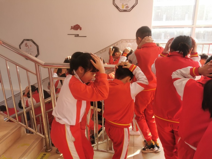 演練前,班主任老師統(tǒng)一開展防震專題教育,仔細(xì)給學(xué)生講解逃生技巧和疏散要求,向?qū)W生講解、示范地震時(shí)的自救方法,明確疏散的信號和路線并觀看防震避險(xiǎn)知識(shí)視頻。隨著第一聲逃生警報(bào)鈴響起,全體師生拿書擋著頭部就地蹲下或者鉆進(jìn)課桌下面,保護(hù)自己的頭部。第二聲逃生警報(bào)鈴響起的時(shí)候,班主任按預(yù)先設(shè)置的逃生路線組織學(xué)生緊急逃生;班長在班級隊(duì)伍前面帶領(lǐng)學(xué)生逃生,班主任在學(xué)生后面殿后,觀察學(xué)生逃生情況,處理突發(fā)事件。全體師生緊張有序地撤離到操場并報(bào)數(shù),然后各班主任迅速向李冠主任匯報(bào)本班人數(shù)。整個(gè)撤離過程用時(shí)2分20秒。期間沒有發(fā)生擁擠或踩踏等事件,整個(gè)演練過程迅速且有序。