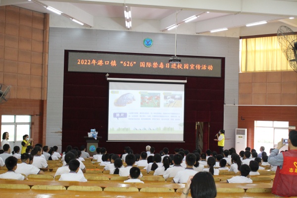 為貫徹落實市禁毒委2022年度“全民禁毒宣教月”活動要求,進一步深化禁毒預(yù)防教育工作,增加師生對禁毒知識的了解,提高學(xué)生辨別毒品、抵制毒品的能力,2022年6月15日,港口鎮(zhèn)“626國際禁毒日”禁毒宣傳進校園活動在大南中學(xué)舉行。港口鎮(zhèn)關(guān)工委、綜治辦、禁毒辦、團委、公安局等相關(guān)部門領(lǐng)導(dǎo),大南中學(xué)師生200余人參加了活動。