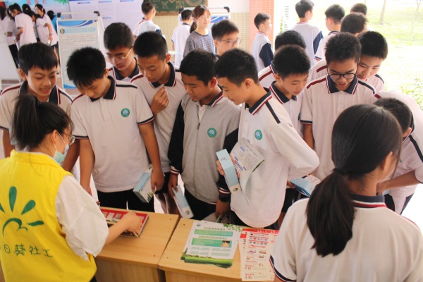 接著,向日葵禁毒社工帶領(lǐng)學(xué)生學(xué)習(xí)禁毒知識,社工們用通俗易懂的語言講解了什么是毒品、毒品的種類、偽裝形式以及如何遠離毒品、防范毒品等禁毒知識,提高學(xué)生辨別毒品的能力。隨后,大南中學(xué)德育處副主任宋穎帶領(lǐng)大家一起宣誓,全體參會人員一起宣誓,表達了自覺抵制毒品誘惑、主動參與禁毒斗爭、同享健康生活的決心。