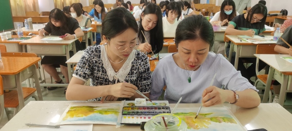 本次培訓(xùn)活動(dòng)采取了理論與實(shí)踐相結(jié)合的形式,讓老師們?cè)谳p松、互動(dòng)的氛圍中提高了對(duì)水彩畫這一畫種的認(rèn)識(shí),獲取了水彩畫技法,為在今后的美術(shù)教學(xué)中進(jìn)行多畫種融合提供了幫助,更好地貫徹執(zhí)行了美術(shù)新課標(biāo)的精神。