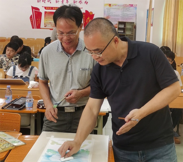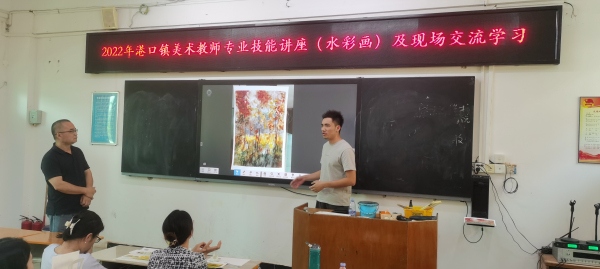 為進(jìn)一步貫徹新課標(biāo)理念,提升美術(shù)教師專業(yè)技能,2022年9月14日,港口鎮(zhèn)美術(shù)教師專業(yè)技能講座(水彩畫)及現(xiàn)場(chǎng)交流學(xué)習(xí)活動(dòng)在大南中學(xué)舉行。本次活動(dòng)主題為“水彩畫及教學(xué)經(jīng)驗(yàn)交流”,港口鎮(zhèn)教育和體育事務(wù)中心藝術(shù)專干夏榮老師參加了講座。