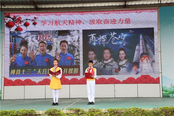 隨后,各班開(kāi)展了內(nèi)容豐富、形式多樣的“迎新年·慶元旦”主題班會(huì)。同學(xué)們?cè)诎鄷?huì)課上拿起了手中的筆,認(rèn)真地書(shū)寫(xiě)了新年愿景卡,為祖國(guó)送上新年祝福,也給自己定下了2022年的目標(biāo),并貼在了學(xué)校的展板上,一起分享新年的喜悅。各班通過(guò)歌曲、舞蹈、朗誦、手抄報(bào)、觀看愛(ài)國(guó)電影等多種文藝形式進(jìn)行慶祝,掌聲陣陣,高潮迭起,歡笑聲響徹了整個(gè)校園。