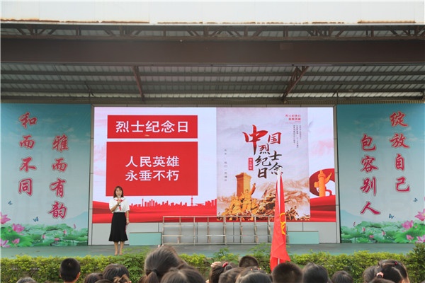 八點(diǎn)整,校園里響起莊嚴(yán)的國歌,鮮艷的五星紅旗緩緩升起,在場師生肅然而立,向國旗行注目禮,少先隊(duì)員行隊(duì)禮,進(jìn)行國家烈士紀(jì)念日升旗儀式。全體師生通過觀看愛國影片《祖國不會(huì)忘記》、聆聽黃嘉欣主任的發(fā)言《緬懷先烈 紅色故事傳承革命精神》、全體師生齊唱《少年》和《中國少年先鋒隊(duì)隊(duì)歌》等方式深切緬懷為民族獨(dú)立、人民解放、國家富強(qiáng)、人民幸福英勇獻(xiàn)身的革命先烈,傳承弘揚(yáng)革命精神,不忘初心、牢記使命。