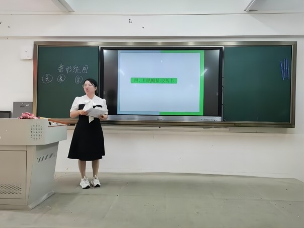 經過4月份第一階段的同課異構,車維、劉丹丹老師以優(yōu)異的成績均進入10月份第二階段說課答辯階段。說課答辯階段是參賽選手現(xiàn)場抽簽確定說課課題,然后獨自在無網絡環(huán)境下的備考室用1小時的時間對抽選到的內容撰寫說課稿并制作出課件,充分考驗了數(shù)學教師專業(yè)素養(yǎng)和專業(yè)能力。民主小學兩位老師在賽場上都淡定從容、沉著應戰(zhàn)、分臺競技展風采。他們分別從教材分析、學情分析、教學理念、教學過程等方面入手,全面闡述了自己的教學設計與過程,條理清晰、生動精煉。答辯環(huán)節(jié),兩位老師對提出的問題都能對答如流、有理有據。經過激烈角逐,車維、劉丹丹兩位老師均以優(yōu)異成績晉級第三階段的課堂教學比賽。