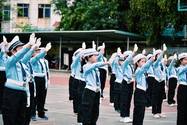 活動(dòng)的第二環(huán)節(jié)為有獎(jiǎng)問(wèn)答互動(dòng)環(huán)節(jié),現(xiàn)場(chǎng)同學(xué)激情滿滿,踴躍舉手參與互動(dòng),小教員們?cè)诨?dòng)中更加全面地學(xué)習(xí)到交通知識(shí)。活動(dòng)的第三環(huán)節(jié),交警大隊(duì)鐵騎哥哥給小教員們講解、示范常用的交通安全指揮手勢(shì)。在標(biāo)準(zhǔn)的動(dòng)作和細(xì)致的指導(dǎo)下,孩子們熱情高漲、興致勃勃?;顒?dòng)的第四環(huán)節(jié),鐵騎哥哥邀請(qǐng)小教員們近距離觀摩、接觸鐵騎警用裝備,試坐鐵騎摩托車,切身體會(huì)鐵騎隊(duì)員在路上開(kāi)展治安巡防工作的艱辛與不易。