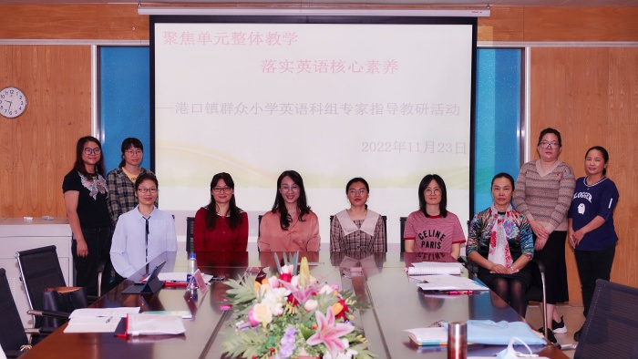 為進(jìn)一步理解義務(wù)教育《英語課程標(biāo)準(zhǔn)》(2022年版),踐行新課標(biāo)理念,提升英語教師的單元整體教學(xué)設(shè)計能力,促進(jìn)全體英語教師的專業(yè)成長,11月23日上午,港口鎮(zhèn)群眾小學(xué)英語科組開展以“聚焦單元整體教學(xué),落實(shí)英語核心素養(yǎng)”為主題的教研活動,本次活動邀請了中山市小學(xué)英語教研中心組組長陳玉河老師蒞臨指導(dǎo)。港口鎮(zhèn)教育和體育事務(wù)中心吳濤濤老師及群眾小學(xué)英語科組全體成員參加了本次教研活動。