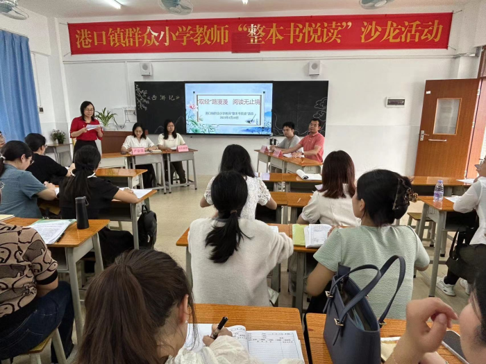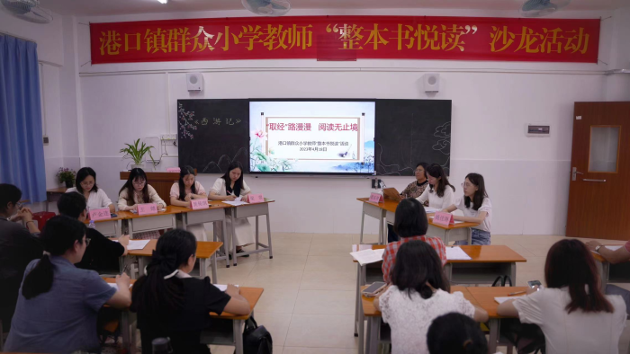為探究教師引導(dǎo)“整本書(shū)悅讀”的課堂教學(xué)方法,提高教師課堂教學(xué)能力,激發(fā)學(xué)生閱讀的興趣,提高師生閱讀能力,4月18日下午,港口鎮(zhèn)群眾小學(xué)舉行 2022 學(xué)年教師“整本書(shū)悅讀”沙龍活動(dòng)。此次活動(dòng)邀請(qǐng)港口鎮(zhèn)教育和體育事務(wù)中心蘇彩南老師和兄弟學(xué)校的領(lǐng)導(dǎo)、老師們蒞臨指導(dǎo)工作。