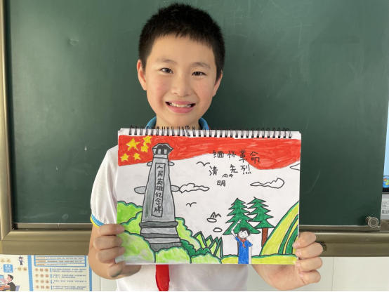 美術(shù)老師組織同學(xué)們開展了以“我們的節(jié)日——清明”為主題的繪畫活動(dòng),繪畫有關(guān)清明節(jié)的圖畫,并且在班級(jí)上展示,表達(dá)對(duì)英雄烈士的敬佩與緬懷之情。