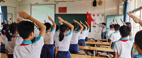 為認(rèn)真學(xué)習(xí)宣傳貫徹習(xí)近平總書記在慶祝中國共產(chǎn)黨成立100周年大會上的重要講話精神,深入學(xué)習(xí)貫徹習(xí)近平總書記關(guān)于少年兒童和少先隊工作的重要論述,貫徹落實《中共中央關(guān)于全面加強新時代少先隊工作的意見》,增強少先隊員光榮感,團結(jié)、教育、引領(lǐng)少先隊員健康成長,做好少先隊員的思想引領(lǐng)工作,以飽滿的精神狀態(tài)迎接中國少年先鋒隊中山市第八次少先隊代表大會的召開。10月11日上午,石特小學(xué)舉行了“請黨放心,強國有我——喜迎少先隊中山市第八次代表大會”少先隊活動。