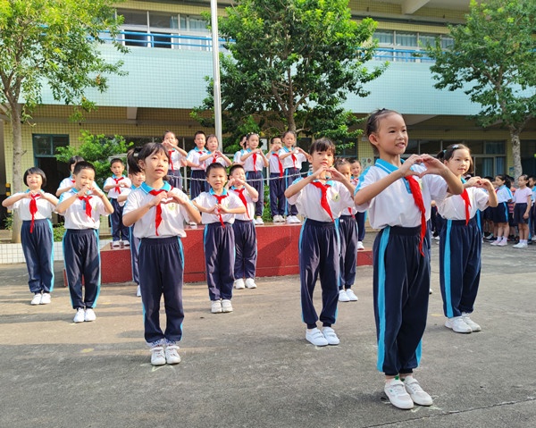 迎著清晨的第一縷朝陽,禮儀隊的同學(xué)在校門口為老師們送上了親切的祝福,讓全校教師倍感溫馨,體會到了身為教師的幸福感和自豪感。