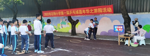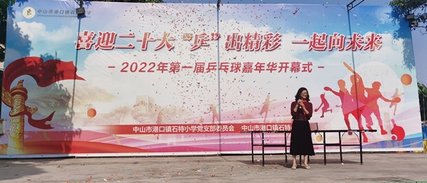 為強(qiáng)健師生體魄,傳承乒乓球文化,發(fā)揚(yáng)國乒精神,激發(fā)學(xué)生對(duì)學(xué)習(xí)乒乓球的興趣,打造一張以“乒乓球”為特色的新名片。4月8日下午,石特小學(xué)舉行了首屆乒乓球嘉年華開幕式暨游園活動(dòng)。出席本次活動(dòng)的領(lǐng)導(dǎo)和嘉賓是石特社區(qū)梁錫明書記、梁偉權(quán)副書記,還有石特小學(xué)蘇少麗校長以及一眾行政。