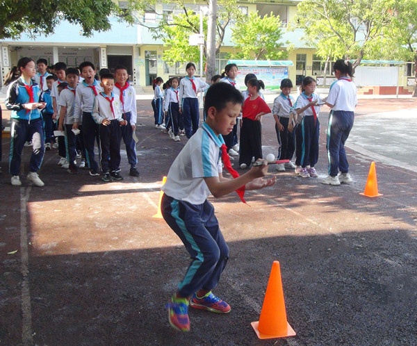 開幕式結(jié)束后,“乒乓”積章?lián)Q禮游園活動(dòng)馬上開始。乒乓球顛球、乒乓球障礙跑、乒乓球定點(diǎn)擊球進(jìn)框、乒乓球高矮人、轉(zhuǎn)呼啦圈托球……各種有趣的乒乓玩法,都在等著大家解鎖。在學(xué)校精心布置的乒乓球趣味游玩一條街里,每個(gè)同學(xué)都為“積章”換禮而拼搏,吶喊聲、喝彩聲、鼓掌聲不絕于耳,大家都樂在“乒乓”中,興致盎然。最后,每一位同學(xué)手上的“積章單”上都蓋滿了“乒乓章”,拿著學(xué)校特制“乒乓球”禮物的同學(xué),臉上都洋溢著自豪與成功的笑容。