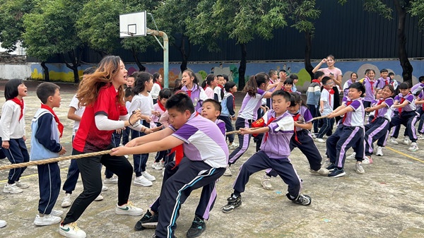 春風(fēng)吹拂的下午,迎來了激動(dòng)人心的團(tuán)體比賽。為了班級(jí)榮譽(yù),每個(gè)班的同學(xué)都團(tuán)結(jié)一致,積極參與?!捌埂北M全力拔河比賽可謂是重頭戲。雙方隊(duì)員全神貫注,緊緊抓牢手中的繩子,勒繩下腰,重心下降,咬緊牙關(guān),加足馬力,團(tuán)結(jié)一心,向后用力。加油聲、歡呼聲、吶喊聲,燃爆全場(chǎng)。