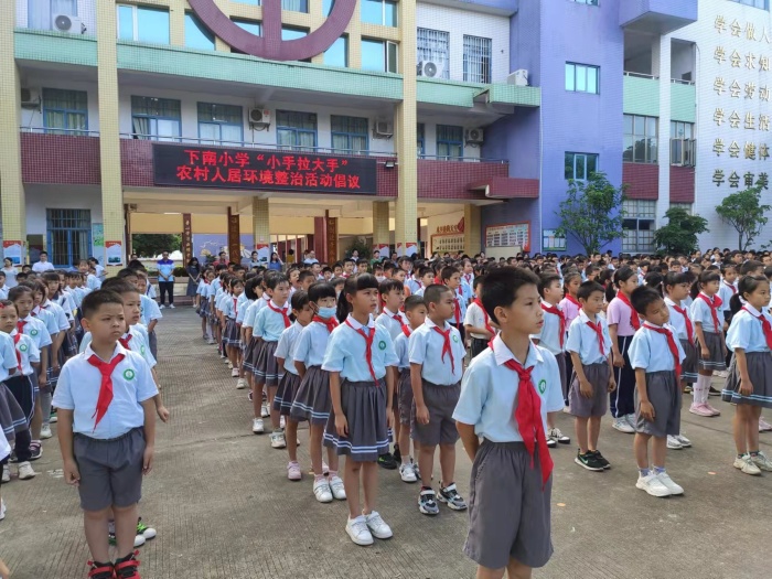 2022年5月30日,下南小學陳嫻玉老師利用在國旗下講話的時間向?qū)W生發(fā)出“小手拉大手”農(nóng)村人居環(huán)境整治活動的倡議。在宣讀倡議書后,陳老師還指導學生學習了一首關(guān)于人居環(huán)境衛(wèi)生整治的順口溜。