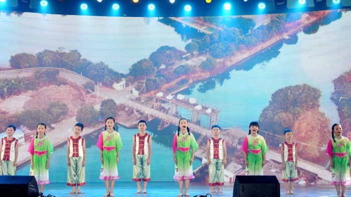港口鎮(zhèn)下南小學的孩子們用優(yōu)美的歌聲演唱著自己的美麗家鄉(xiāng),下南小學師生們繼承發(fā)揚著水鄉(xiāng)人民的勤勞刻苦,利用暑假時間在校堅持訓練,孩子們的水平得到進一步提升。