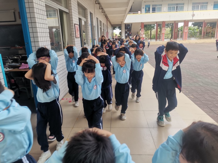 警報聲一響,全校師生進(jìn)入緊急地震逃生的情境中,各老師迅速趕到疏散崗位,整個疏散過程配合默契,每位老師都將演練作為實(shí)戰(zhàn)應(yīng)對,認(rèn)真指揮,謹(jǐn)慎操作,確保萬無一失;各班學(xué)生在任課老師的有效組織下,雙手抱頭,彎腰前行,學(xué)生在最短的時間內(nèi),安全有序、快速到達(dá)安全地點(diǎn),隨后各班隨即清點(diǎn)人數(shù)向梁麗鴻校長匯報。