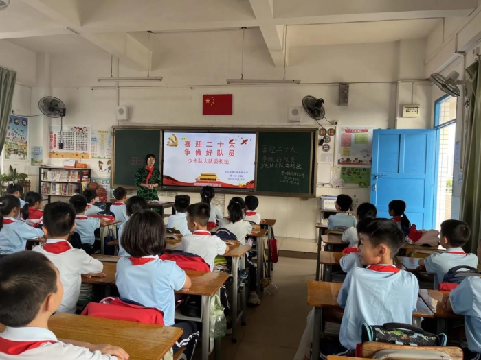 最后,大隊輔導(dǎo)員潘英華老師帶領(lǐng)隊員們呼號:“準(zhǔn)備著,為共產(chǎn)主義事業(yè)而奮斗!”“時刻準(zhǔn)備著!”錚錚誓言表達(dá)決心。從今天起,新隊員將肩負(fù)共產(chǎn)主義接班人的光榮與使命,奮發(fā)前進(jìn)!