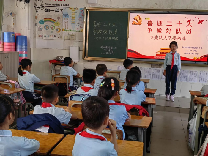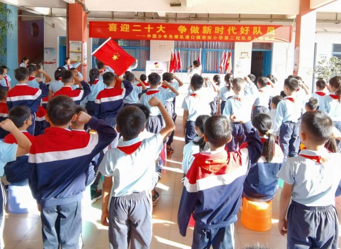 為深入貫徹落實習(xí)近平總書記關(guān)于少年兒童和少先隊工作的重要論述,以喜迎二十大為工作主線,傳承紅色基因,培育時代新人,引領(lǐng)廣大少先隊員永遠(yuǎn)跟黨走、奮進(jìn)新征程,以實際行動迎接黨的二十大勝利召開,在中國少年先鋒隊建隊73周年來臨之際,港口鎮(zhèn)西街小學(xué)少先隊大隊部緊密圍繞“喜迎二十大,爭做好隊員”主題,深入開展形式多樣、內(nèi)容豐富的建隊紀(jì)念日活動?! ?/p>