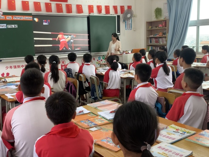 教務(wù)主任楊雨結(jié)合中南小學(xué)英語課題組課題研究方向,借助“愛種子”平臺,呈現(xiàn)一節(jié)精彩的文化拓展教學(xué)示范課。本節(jié)課教授的內(nèi)容是《Culture 2 The Olympic Game 》。在本節(jié)課中,楊主任運用了“愛種子”平臺中的“主題拓展”的教學(xué)模式和診斷功能,有目的、有計劃地開展教學(xué),向同學(xué)們展示了豐富的奧運標志物品、奧運項目,觀看視頻了解奧運文化。教學(xué)活動設(shè)計環(huán)環(huán)相扣,突破重難點,大大活躍了課堂氣氛,提高學(xué)生學(xué)習(xí)積極性。