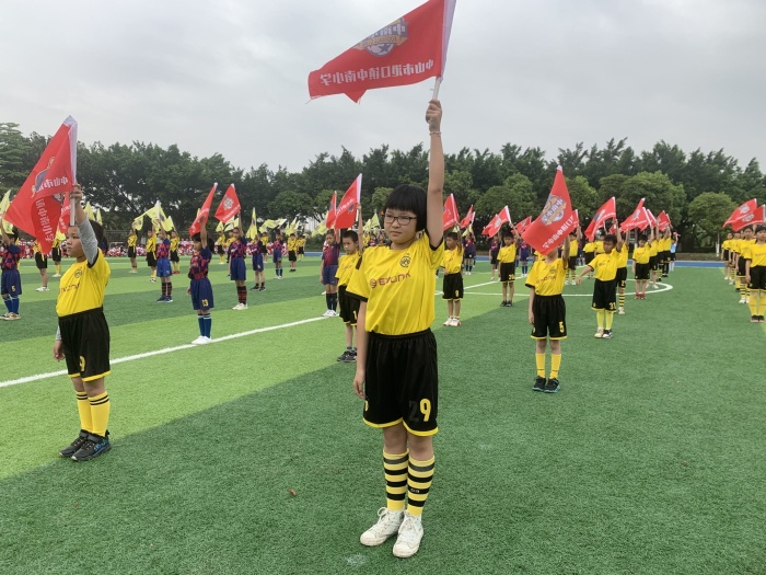 2022年3月30日上午,港口鎮(zhèn)中南小學(xué)舉行第四屆足球文化節(jié)啟動儀式,16個班級穿著16種代表歐洲足球頂級俱樂部的球衣,在16面足球隊旗的指引下,全校700多名師生齊聚足球場,參加這期待已久的足球盛會。