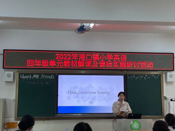 最是一年秋風(fēng)好,金風(fēng)玉露送秋實(shí)。為了加強(qiáng)小學(xué)英語(yǔ)教師對(duì)新課程標(biāo)準(zhǔn)、PEP人教版教材的深層解讀,探討單元整體視域下的教學(xué)策略,促進(jìn)教師專業(yè)發(fā)展,10月28日下午,港口鎮(zhèn)小學(xué)英語(yǔ)四年級(jí)上冊(cè)Unit 3 My friends單元教材解讀與課程標(biāo)準(zhǔn)實(shí)施研討活動(dòng)在港口鎮(zhèn)中心小學(xué)舉行。