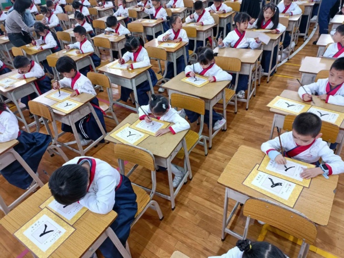 “痣”通“智”,意為開啟智慧,以此寄托美好的愿望,從此眼明心亮,好讀書、讀好書、讀書好。李小健校長(zhǎng)、陳潤(rùn)娣、楊杏蓮、梁少珍、蘇子明、何少紅等老師用筆點(diǎn)蘸紅色的朱砂,在孩子們的額頭正中點(diǎn)上紅痣。這一顆顆紅痣凝結(jié)著中華五千年文化的悠悠情結(jié),也飽含著老師對(duì)孩子們的美好祝愿。愿他們從今天起,耳聰目明,好讀書,讀好書,成為一個(gè)愛學(xué)習(xí),有智慧之人。