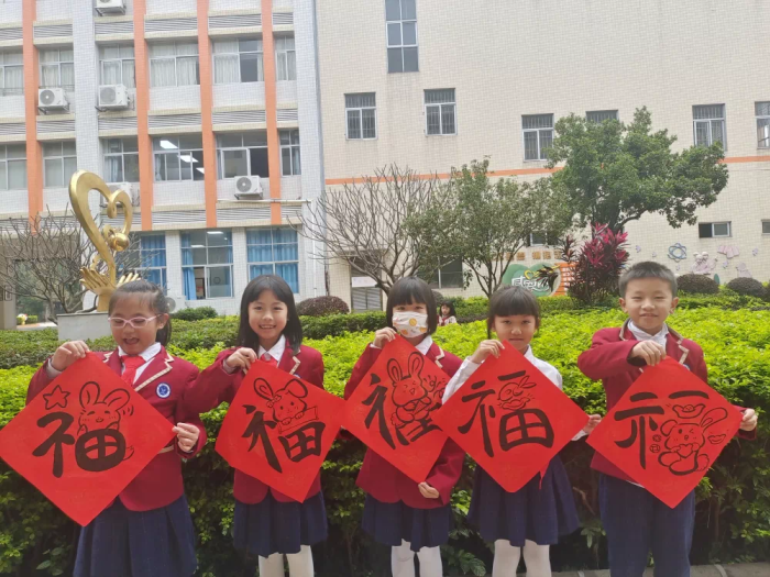 2月6日上午,港口鎮(zhèn)中心小學(xué)到處充滿歡聲笑語。笑容可掬的值日老師,和藹可敬的行政團隊站在校門口迎接中心小學(xué)學(xué)子歸來。看,正門口獅隊在鑼鼓聲中跳躍騰飛,吉祥兔蹦蹦跳跳、親切問好,財神爺眉開眼笑、恭賀新禧,真熱鬧呀!老師們正在給孩子們派發(fā)新年利是糖呢,那甜蜜的糖里寄托著老師對學(xué)生的殷殷期盼和衷心的祝福。整個校園經(jīng)過精心布置,展示孩子們充實、愉快的年俗活動和孩子們的新年愿望。
