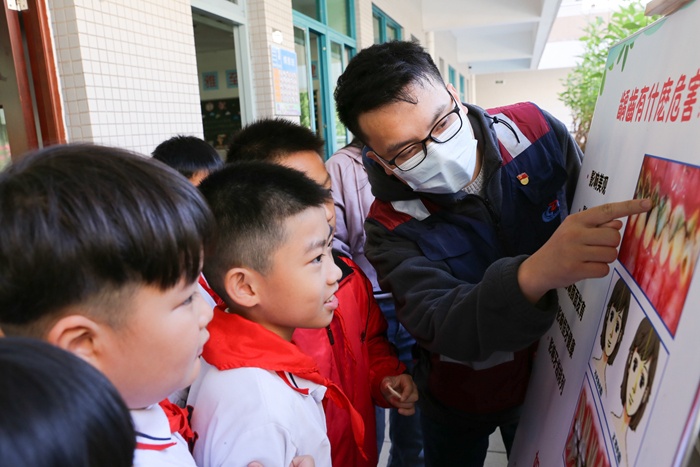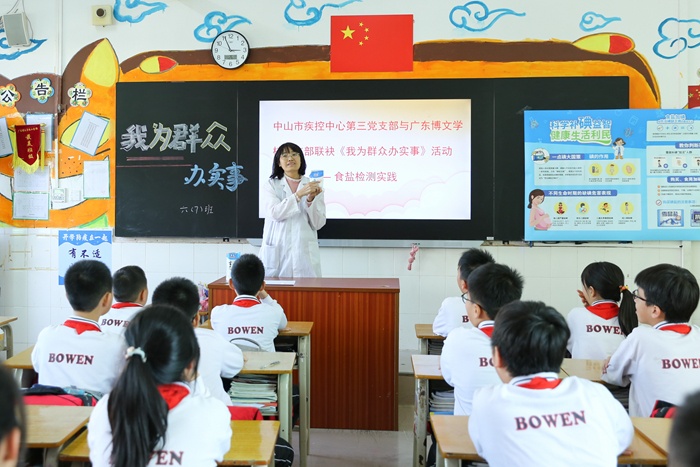 為進(jìn)一步加強(qiáng)學(xué)校衛(wèi)生工作,預(yù)防控制學(xué)生常見病發(fā)生,保障青少年身心健康,中山市疾病預(yù)防控制中心第三黨支部、火炬開發(fā)區(qū)疾控中心黨小組及廣東博文學(xué)校黨支部于11月26日下午在廣東博文學(xué)校聯(lián)袂開展了“轉(zhuǎn)變作風(fēng)促轉(zhuǎn)型 勇開新局再出發(fā)”聚力保護(hù)學(xué)生健康主題黨日活動。市疾控中心黨委委員、中心副主任黃誠,中心第三黨支部書記郭艷,廣東博文學(xué)校黨支部書記、校長張海經(jīng),學(xué)校副校長任德利及黨員志愿者們共同參與此次活動。
