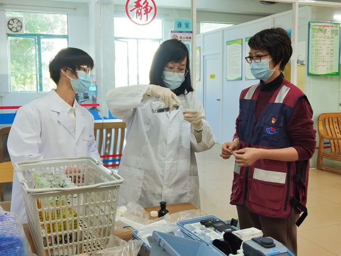 疾控的黨員志愿者們分別在食堂為餐飲從業(yè)人員進(jìn)行食源性疾病防控和營養(yǎng)配餐指導(dǎo),為老師們進(jìn)行了學(xué)校衛(wèi)生標(biāo)準(zhǔn)的講解,并對學(xué)校飲用水進(jìn)行檢測,指導(dǎo)學(xué)校落實(shí)相關(guān)學(xué)校衛(wèi)生標(biāo)準(zhǔn)。