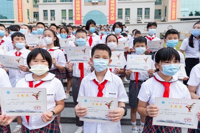 秋風(fēng)起兮木葉飛,博文柳畔書聲起。9月2日,廣東博文學(xué)校全體師生歡聚一堂,在學(xué)校復(fù)興廣場舉行2020-2021學(xué)年度開學(xué)典禮,懷著對未來的無限憧憬,共同開啟博文新篇章。廣東博文學(xué)校校長張海經(jīng)、學(xué)校黨支部書記李敏、董事長助理羅勰平、學(xué)校副校長任德利以及各學(xué)部校長出席典禮,典禮由任副校長主持。
