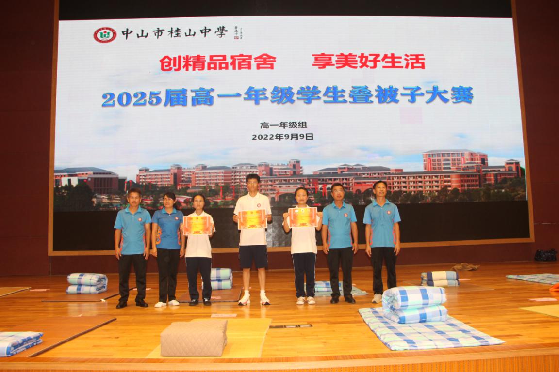 比賽活動(dòng)采用現(xiàn)場(chǎng)隨機(jī)抽簽方式,選出每班 6名同學(xué)作為參賽代表,限時(shí)4分鐘完成。每組比賽結(jié)束后,宿舍生活老師對(duì)參賽同學(xué)的“成果”進(jìn)行打分。整個(gè)比賽過(guò)程緊張而激烈,參賽同學(xué)在場(chǎng)上爭(zhēng)分奪秒、不放過(guò)任何一點(diǎn)皺褶的地方,將被子疊得方方正正,就像軍訓(xùn)期間教官所說(shuō)的疊成“豆腐塊”形狀。場(chǎng)下同學(xué)們的吶喊聲、加油聲此起彼伏。