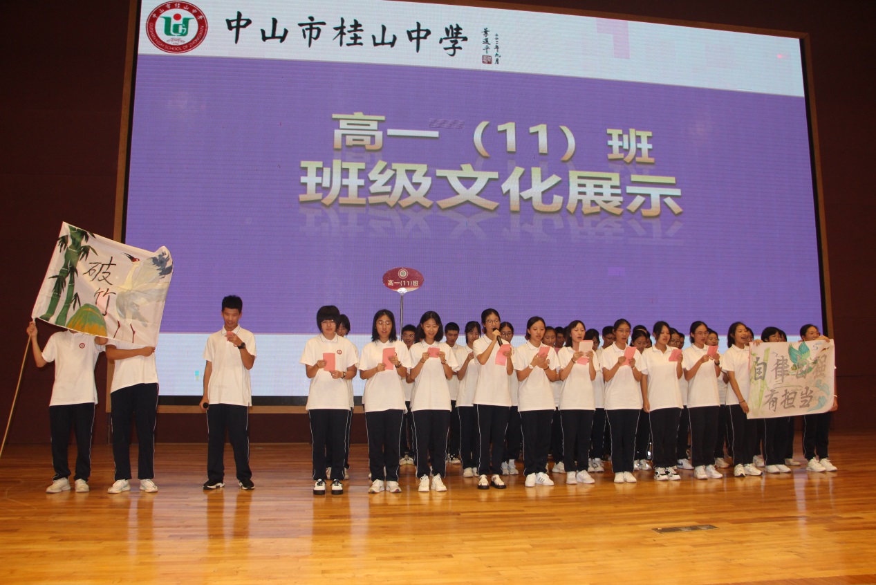 在此之前,每個(gè)班級(jí)都為此次展示做了充足的準(zhǔn)備。高一的同學(xué)們?cè)诎嘀魅闻c心理科組老師的帶領(lǐng)下,利用課余時(shí)間精心創(chuàng)作了班級(jí)班名、班歌、班旗、班級(jí)口號(hào)和班級(jí)公約。在上臺(tái)展示時(shí),每個(gè)班級(jí)都使出護(hù)身解數(shù),同學(xué)們勇敢而自信地介紹著自己班級(jí)的班旗設(shè)計(jì)理念、班級(jí)公約和班級(jí)口號(hào),同時(shí)還在展示中融入了吉他、歌曲、口哨等元素,各具風(fēng)采,創(chuàng)意無限?;顒?dòng)共評(píng)出了最佳精神士氣、最佳團(tuán)結(jié)協(xié)作、最佳風(fēng)紀(jì)禮儀、最佳班旗設(shè)計(jì)、最具特色等多個(gè)獎(jiǎng)項(xiàng)。獲獎(jiǎng)班級(jí)獲得了具有紀(jì)念意義的獎(jiǎng)品——彩色絲帶。絲帶寓意著新一屆的桂山學(xué)子,能秉承桂山的優(yōu)良傳統(tǒng),團(tuán)結(jié)拼搏,奮發(fā)進(jìn)取。